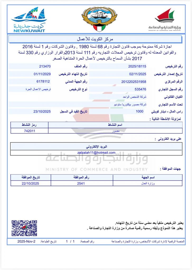 “استوديو بيكتوريا للتصوير: علامة تجارية مسجّلة ومرخّصة في الكويت”